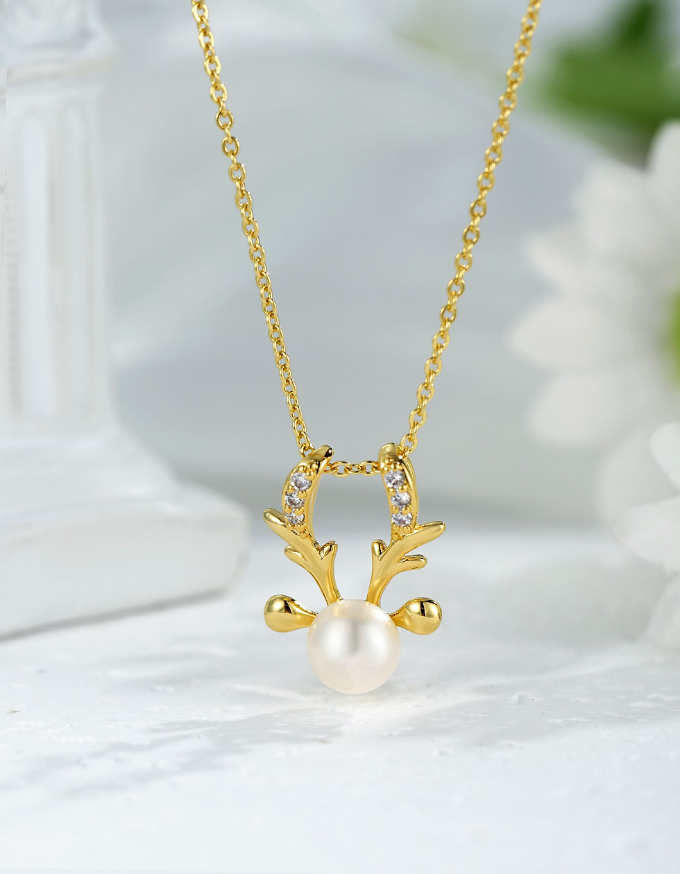 N24040 Antler-style Crystal Pearl Pendant Necklace
