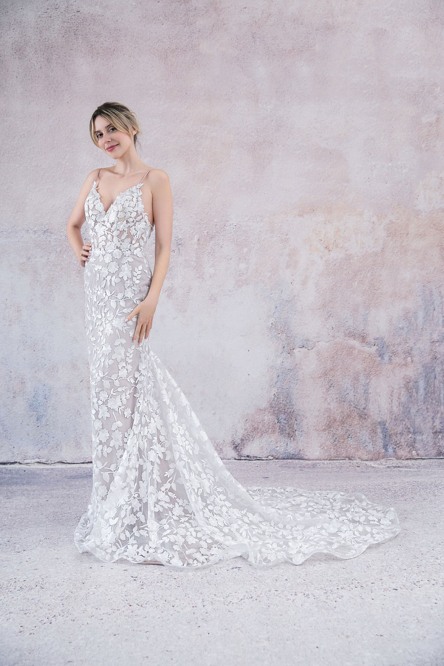 D24003 Blossom - Mermaid Leaflike lace dress