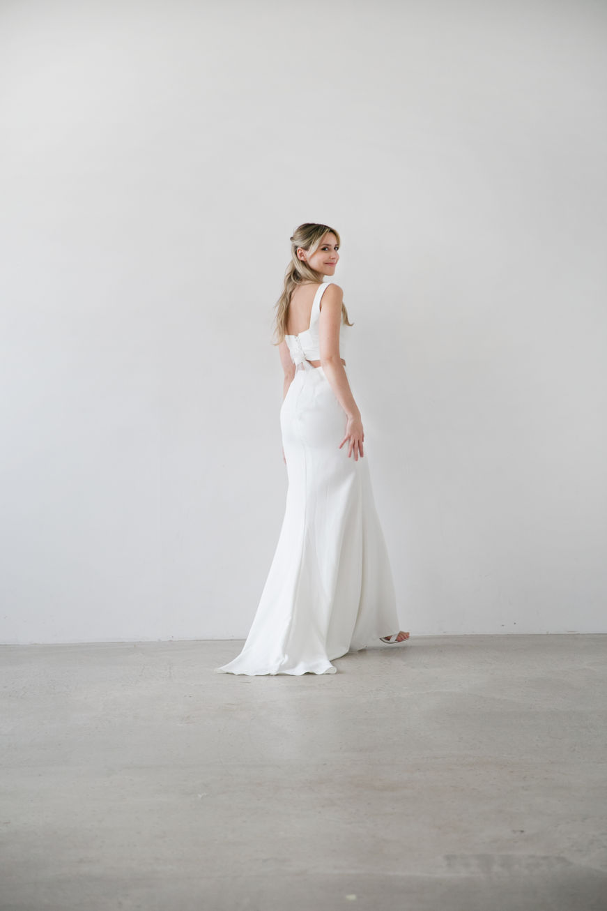 Presenting our Crepe Bridal Topper – a stunning piece adorned with pearl details, designed to complement your wedding ensemble with timeless elegance. Crafted from luxurious crepe fabric, this topper boasts a clean and sophisticated look.