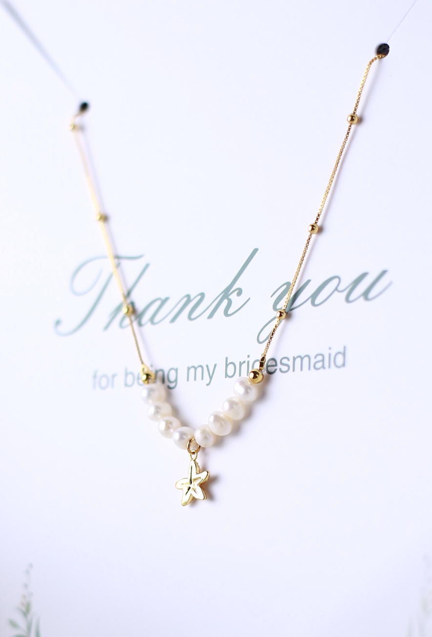 18K Gold Plated Tiny Pearl with Star Necklace, Dainty Natural Freshwater Pearl Necklace, Beaded Gold Chain Pearl Necklace, Pearl and Star Necklace, Pearl Choker, Wedding Necklace, Bridesmaid Gifts, Gift For Her