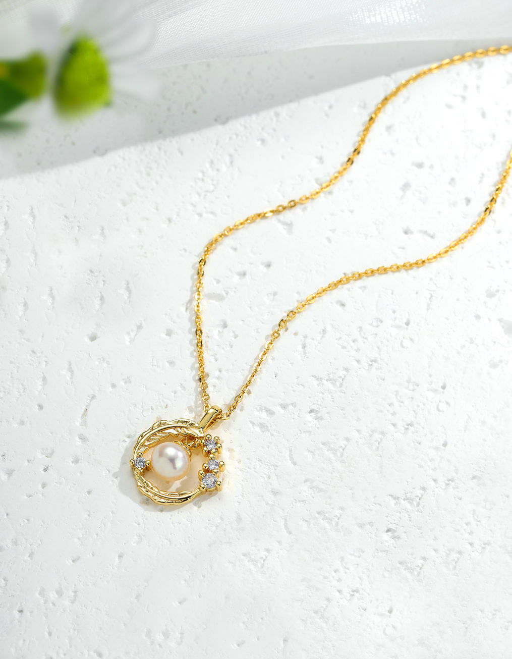 N24048 Pearl, Wreath and Stars Pendant Necklace