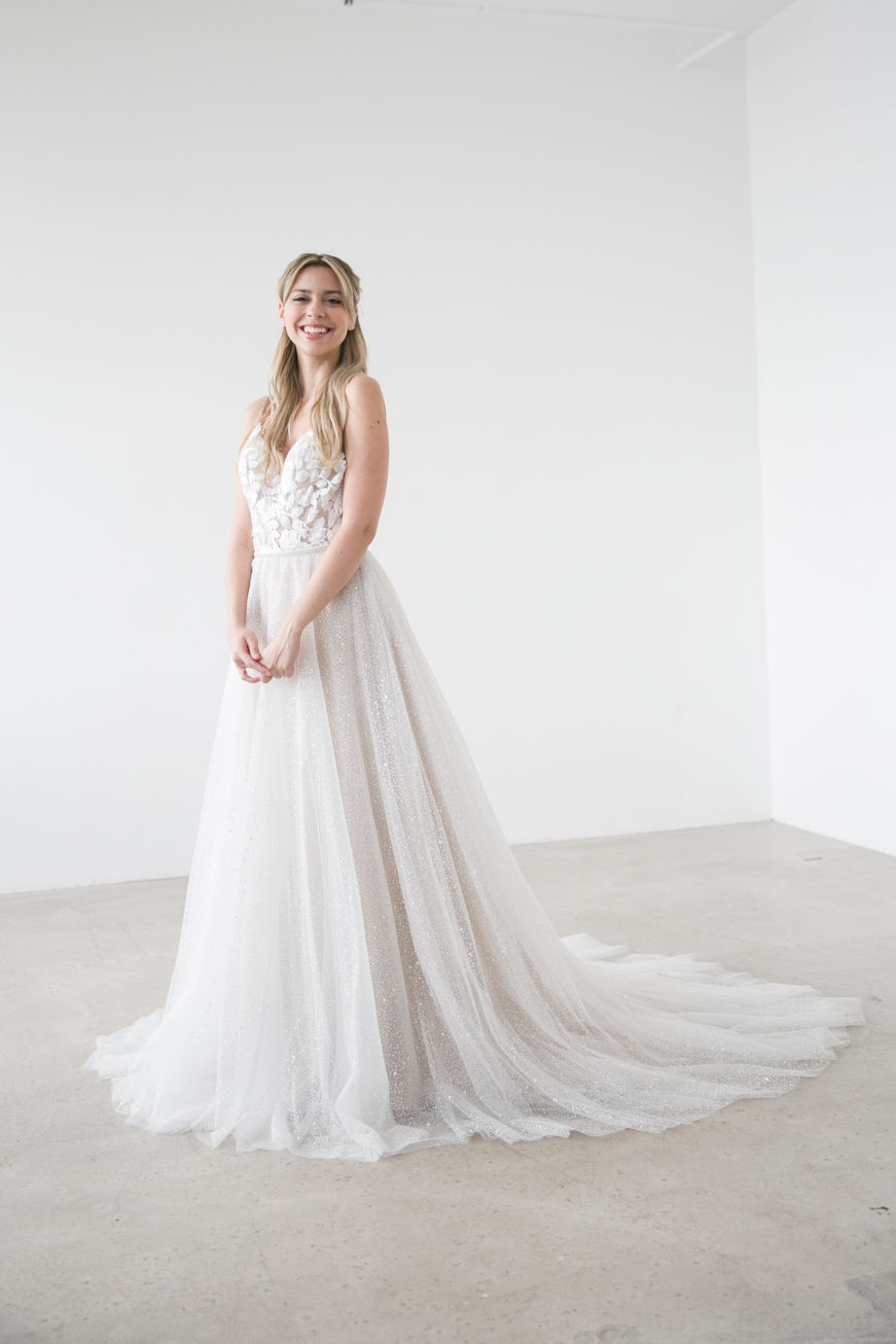 Feature: Sparkle, volume, glitter tulle, champagne underlay