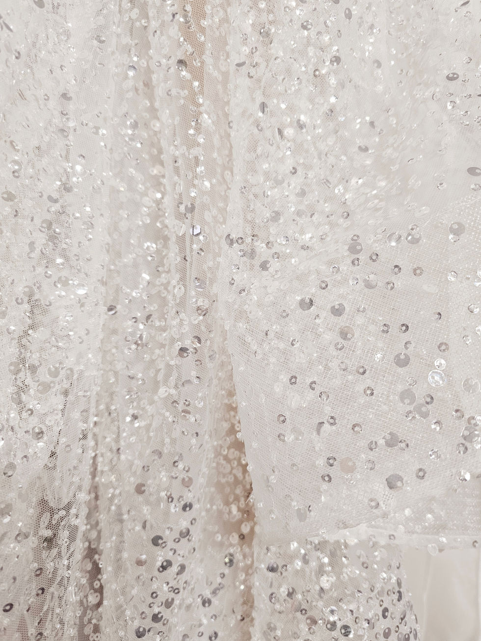 Introducing our Beaded Removable Skirt – a versatile marvel designed to effortlessly elevate your ensemble. Crafted with heavily beaded fabric and delicate horsehair edging, this skirt boasts an opaque lining, making it wearable on its own or as a stunning addition to your current dress. With its impeccable craftsmanship and timeless elegance, it promises to add a touch of glamour to any occasion, offering endless styling possibilities.