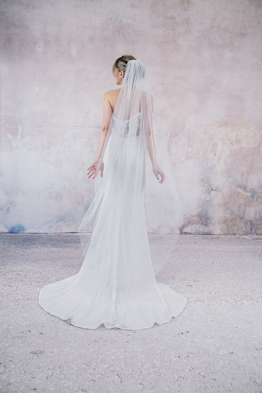 Elevate your bridal style with this elegant 2-tier removable train. Made from luxurious supersoft bridal tulle, it adds a touch of ethereal beauty to your gown. Easily detachable, it offers the perfect transition from a dramatic ceremony look to a dance-ready reception outfit. Customize your wedding ensemble effortlessly and enjoy the freedom to move with ease.