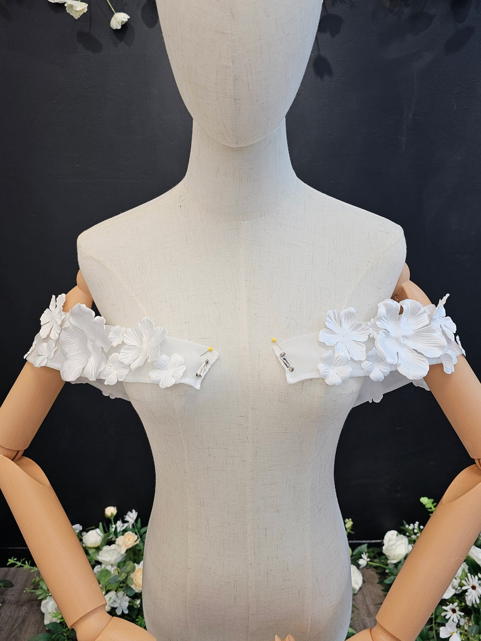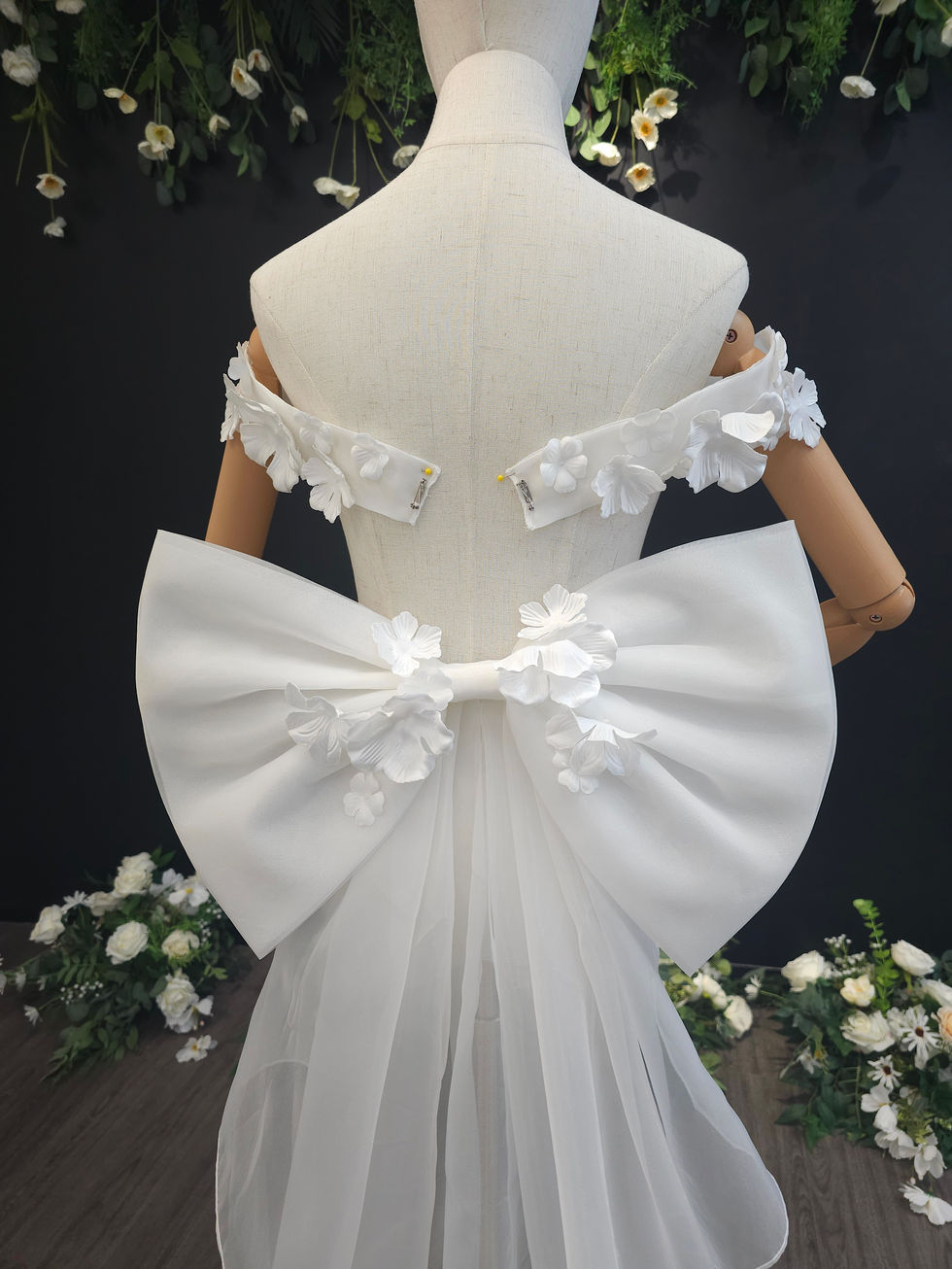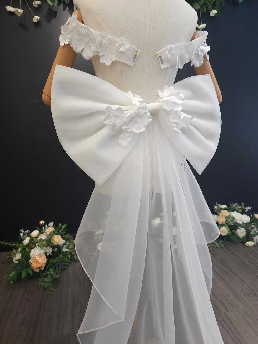 This lightweight organza bow train with straps offers elegant versatility for your bridal look. Use the train, bow, and straps separately or together as a complete set—perfect for customizing your style with ease and grace.