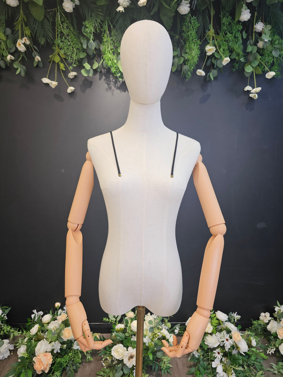 Sleek and modern, these black thin satin straps add a bold, elegant touch to your bridal ensemble. Perfect for the bride looking to make a subtle yet striking statement.