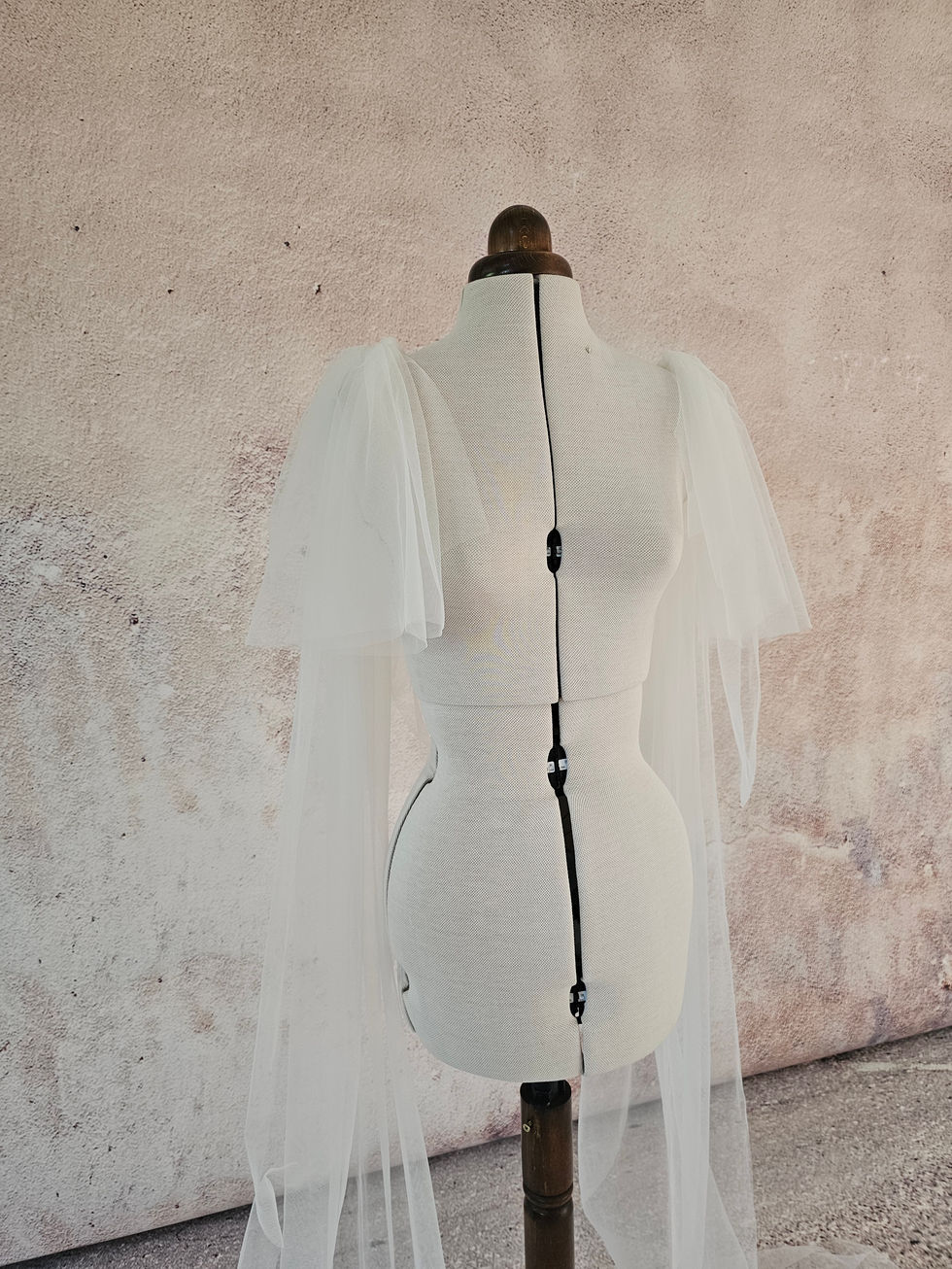 The removable sleeves with wings are versatile and stylish accessories designed to transform any outfit. These detachable sleeves feature elegant, flowing wing-like extensions that add a dramatic flair to your look. Perfect for layering, they can easily be attached or removed, offering a quick way to enhance your fashion statement while providing additional coverage and unique style. Ideal for special occasions or as a bold addition to everyday wear.