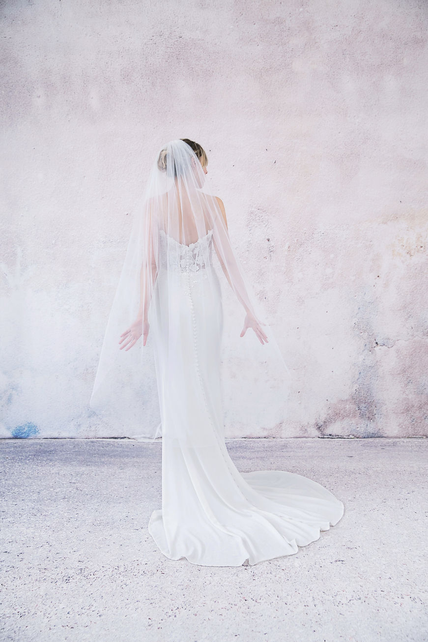 Enhance your bridal look with this 1-tier standard veil crafted from supersoft and transparent tulle. Featuring a metal comb for secure placement, it boasts a raw edge finish for a modern touch. Light and flowy, this veil adds an airy elegance to your wedding day ensemble.
