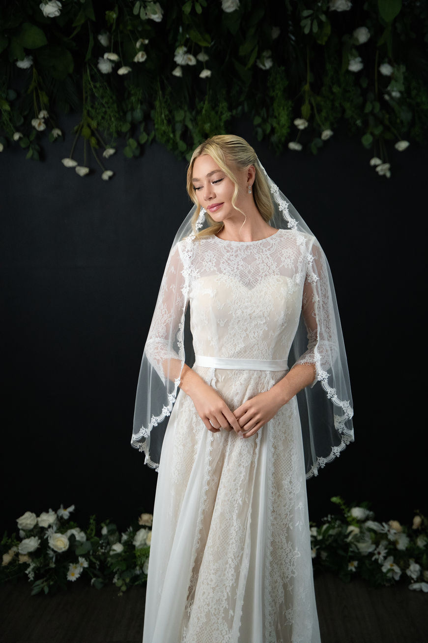 V25002 Meave - Super soft tulle and thin lace edging veil, Lace veil