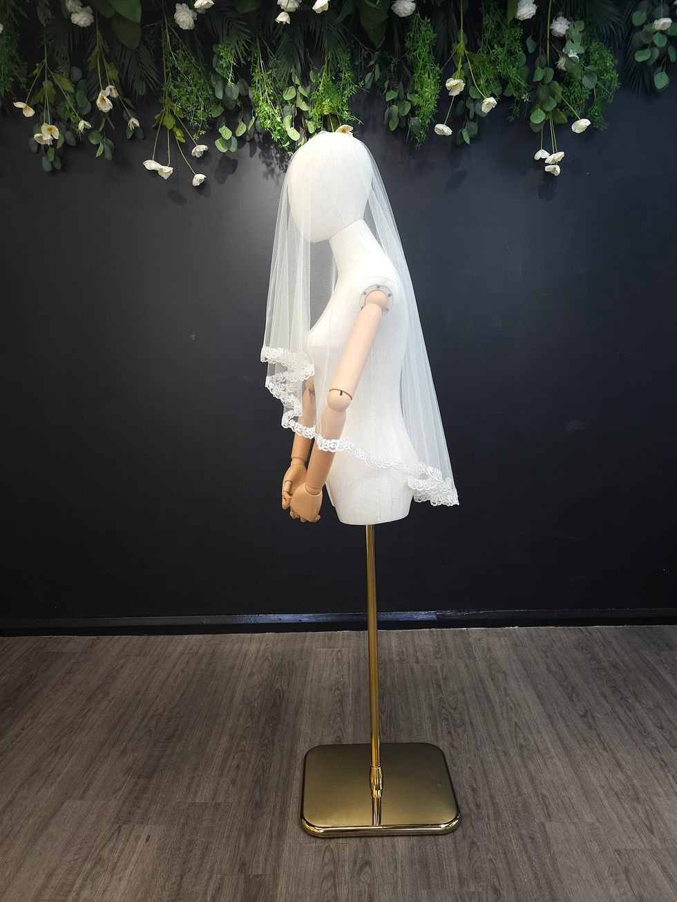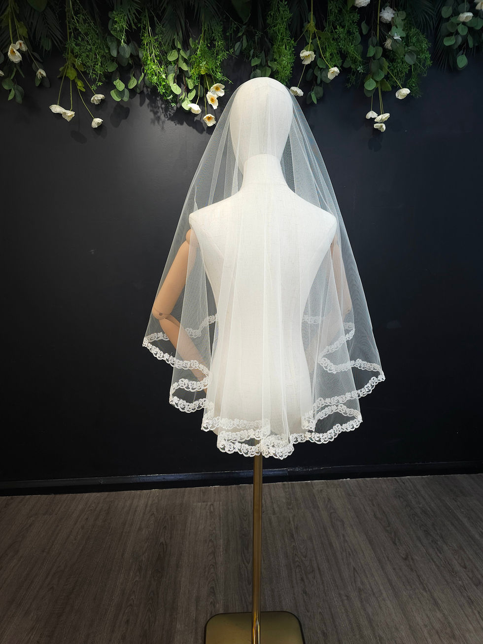 V25023 Leander - Super soft tulle and thin lace edging veil, thin lace trim veil